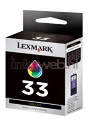 Lexmark 33 met drie kleuren. Deze cartridge heeft een standaard capaciteit. Lexmark 18C0033 is vervangen door 18CX033. Deze nieuwe versie heeft 15% meer inhoud.