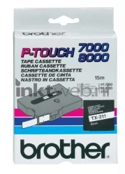 Originele gelamineerde Brother TX-211 tape, zwart op wit. De breedte is 6 mm en de totale lengte is 15 meter.