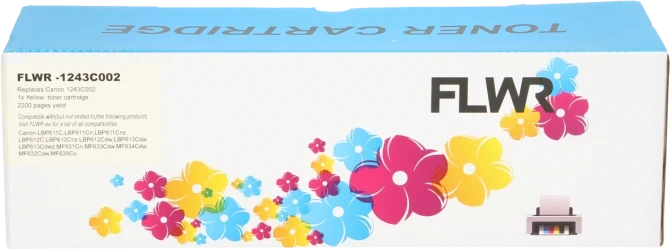 Printen hoeft niet duur te zijn! Ter vervanging van de originele Canon 045 toner geel kan je zonder problemen dit FLWR product gebruiken. De hoge kwaliteitseisen, waaronder het gebruik van 100% nieuwe onderdelen en de uitstekende prijs/kwaliteit/inhoud verhoudingen resulteren in een fantastische printkwaliteit voor teksten en afbeeldingen voor een lage prijs.